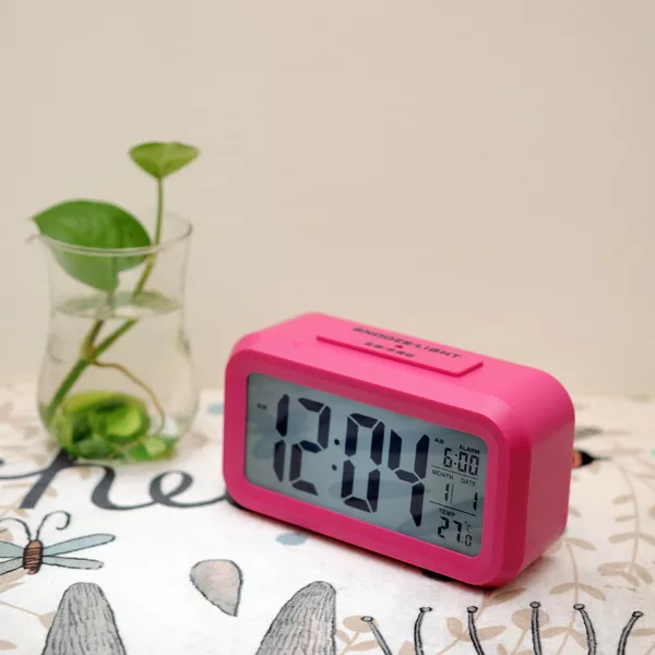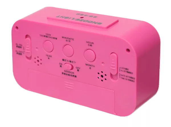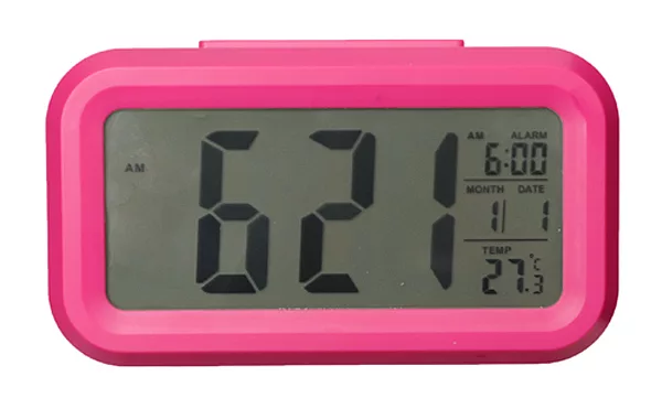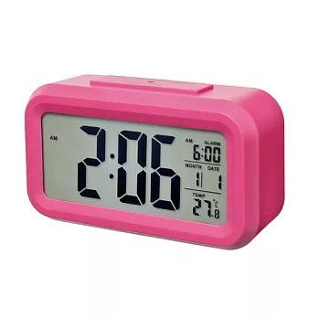 《創意生活家》超大螢幕液晶大數字鬧鈴感光電子鐘(桃紅)-鬧鐘-日期-溫度顯示